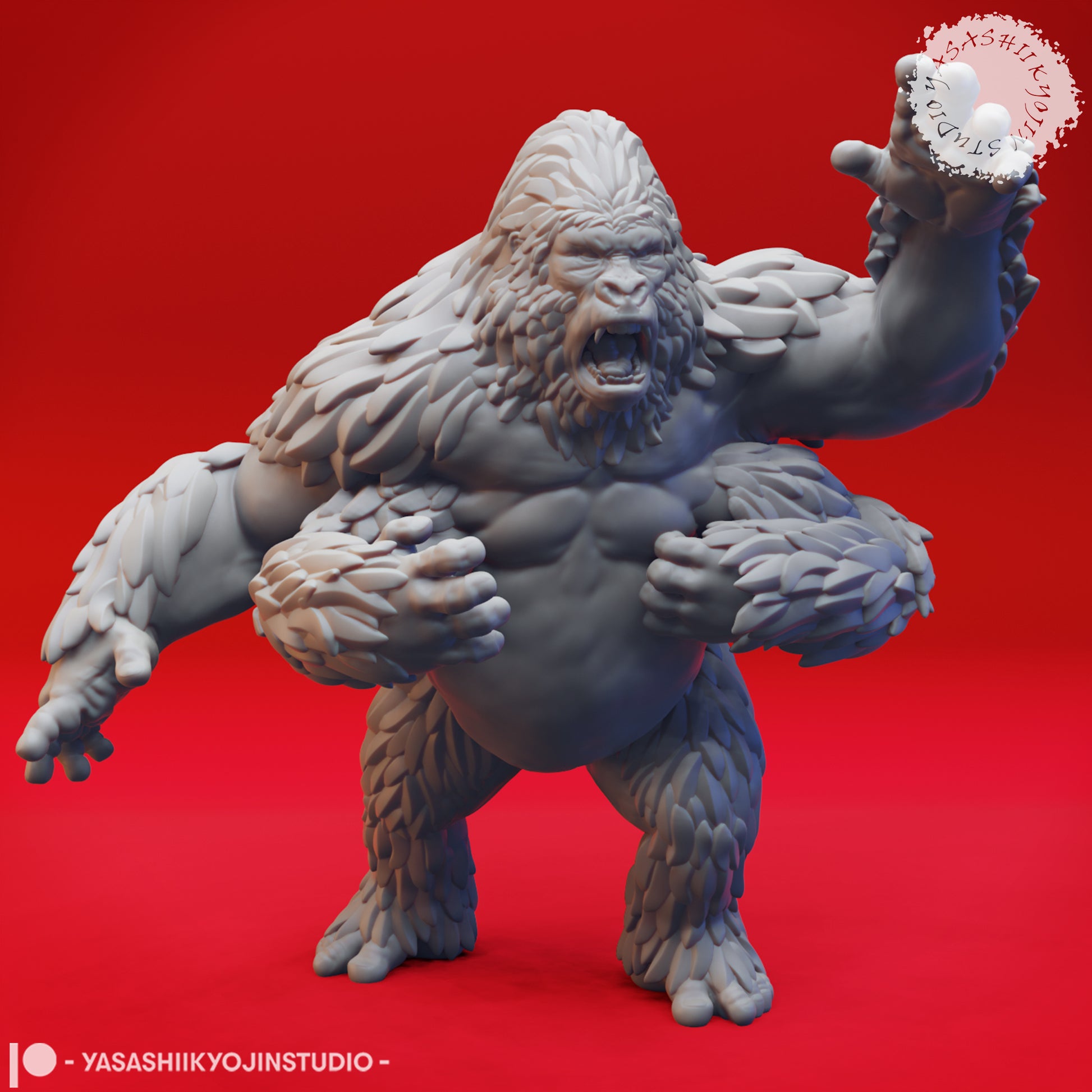 A girallon looks like an oversized, four-armed ape. Its vicious fangs and claws reveal it to be a monstrous predator..